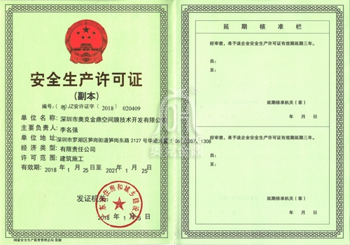鋼結(jié)構(gòu)工程安裝貳級(jí),膜結(jié)構(gòu)工程設(shè)計(jì)壹級(jí),膜結(jié)構(gòu)工程施工壹級(jí),具備安全生產(chǎn)許可證。